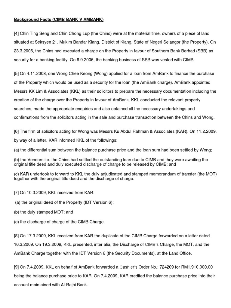 the Property. The claims by CIMB and AmBank as chargees over the same property became the core of