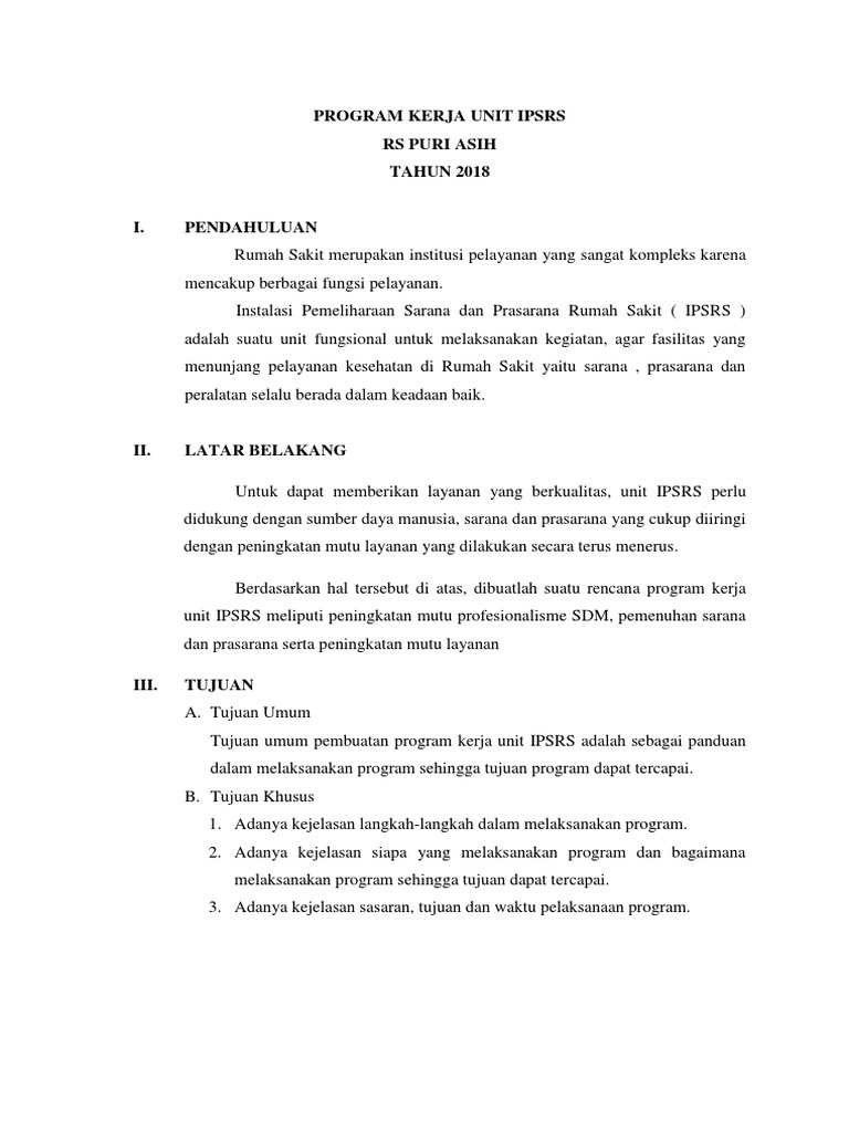 Tujuan umum pembuatan program kerja unit IPSRS adalah sebagai panduan