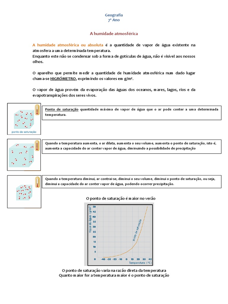 Ponto de saturação quantidade máxima de vapor de água que o ar pode conter a uma determinada