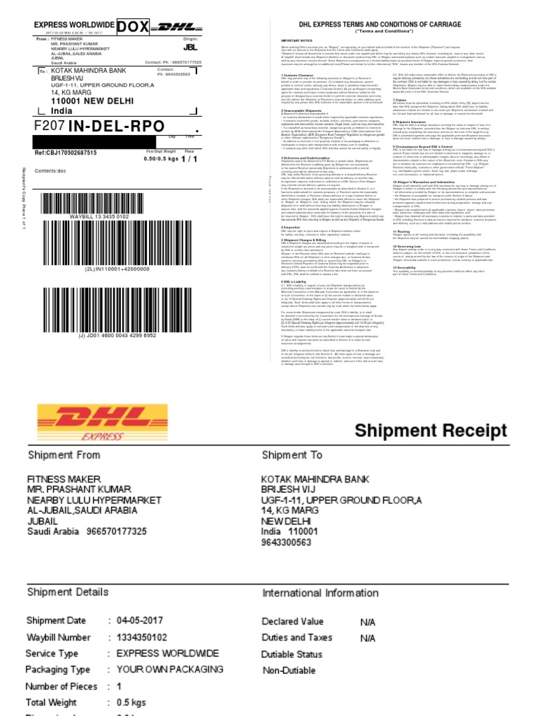 To : KOTAK MAHINDRA BANK Ph :9643300563 6.2 DHL will make every reasonable effort to deliver the Shipment according to DHL's