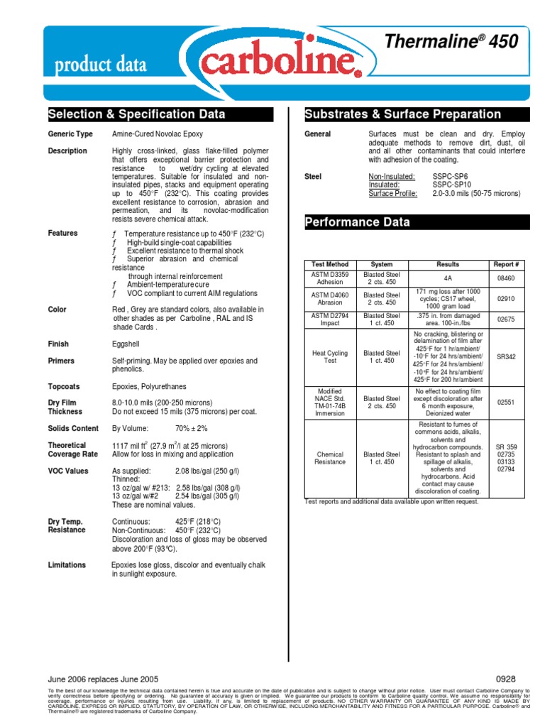verify correctness before specifying or ordering. No guarantee of accuracy is given or implied. We guarantee our products to conform to Carboline quality control. We assume no responsibility for