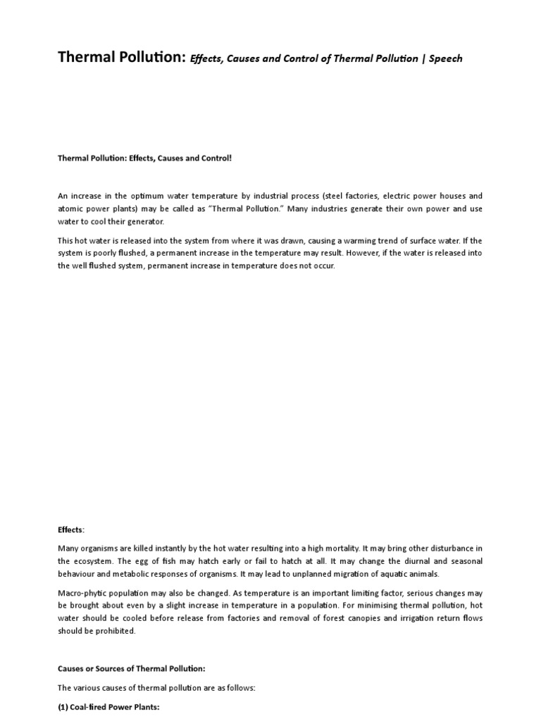 Thermal Pollution: Effects, Causes and Control of Thermal Pollution | Speech