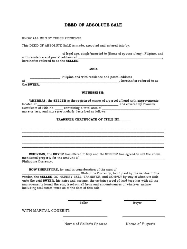 This DEED OF ABSOLUTE SALE is made, executed and entered into by: