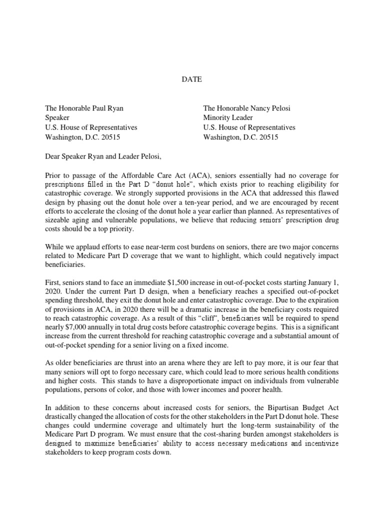Congress should work this year to address the Medicare Part D donut hole cliff to avoid this