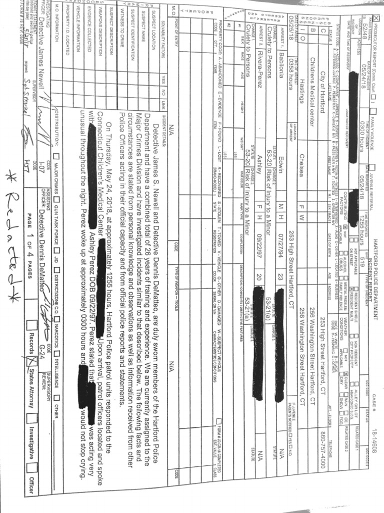 HPD RREST REPORT FOR INFANT ABUSE CASE