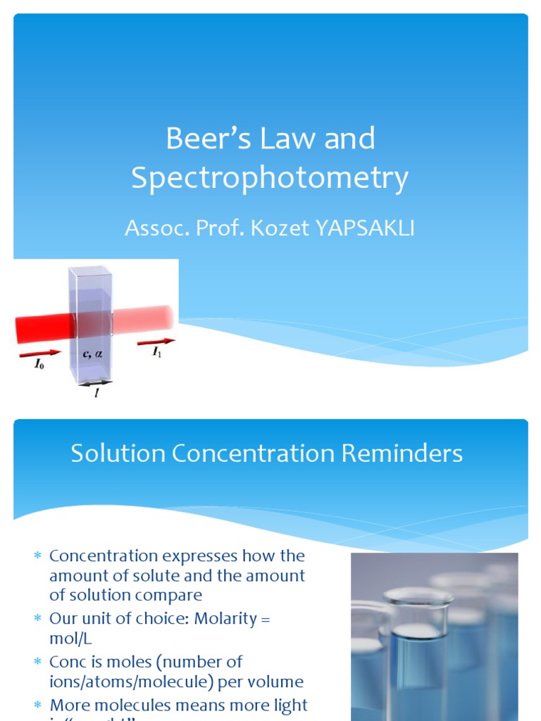 Beer’s Law is stated in a way to make certain quantities easy to compare