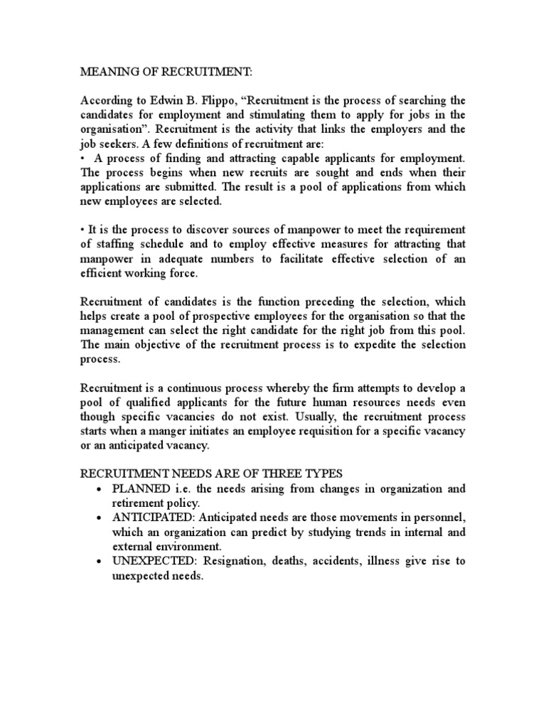 MEANING OF RECRUITMENT: