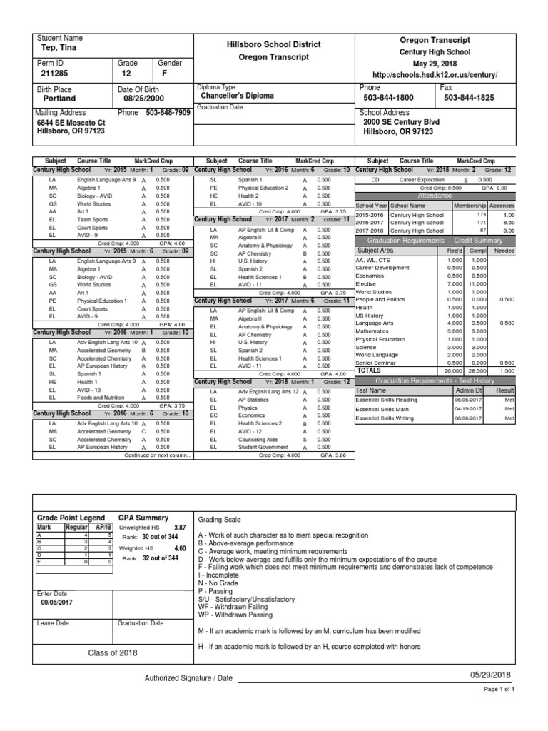 Cred Cmp: 4.000 GPA: 3.75 EL Physics A 0.500 Essential Skills Math 04/19/2017 Met
