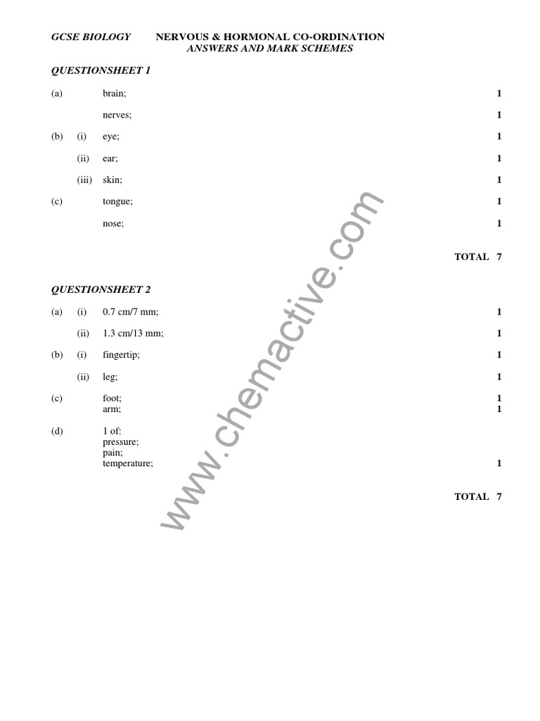 GCSE BIOLOGY NERVOUS & HORMONAL CO-ORDINATION