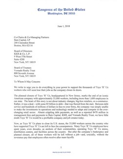 We write to urge you to do everything in your power to support the thousands of Toys ‘R’ Us