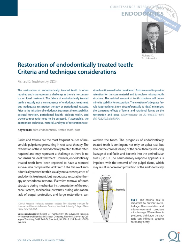occlusal function, periodontal health, biologic width, and restoration and post. (Quintessence Int 2014;45:557–567;