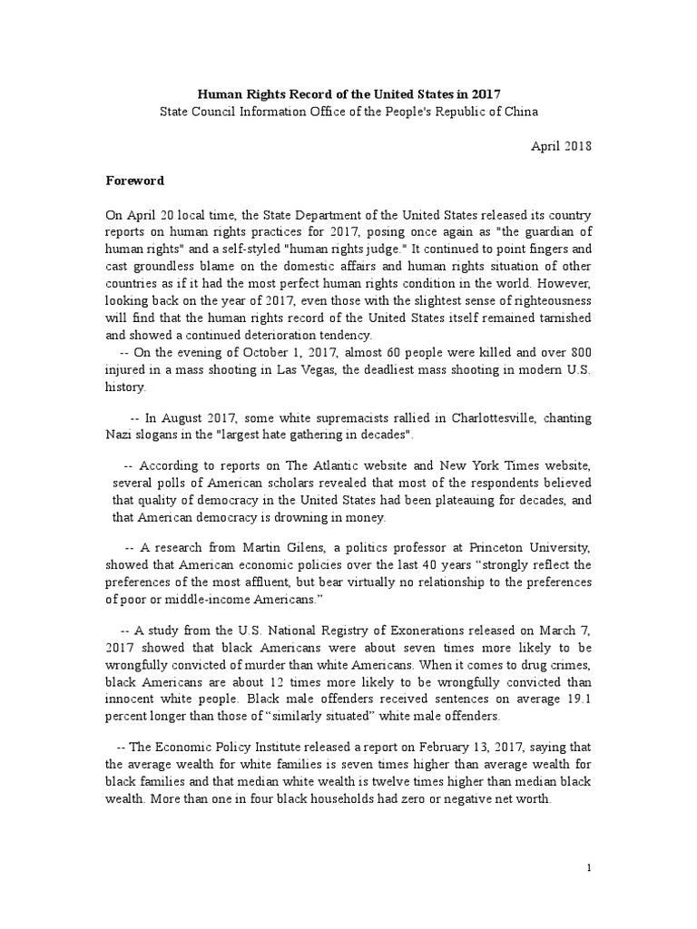 reports on human rights practices for 2017, posing once again as "the guardian of