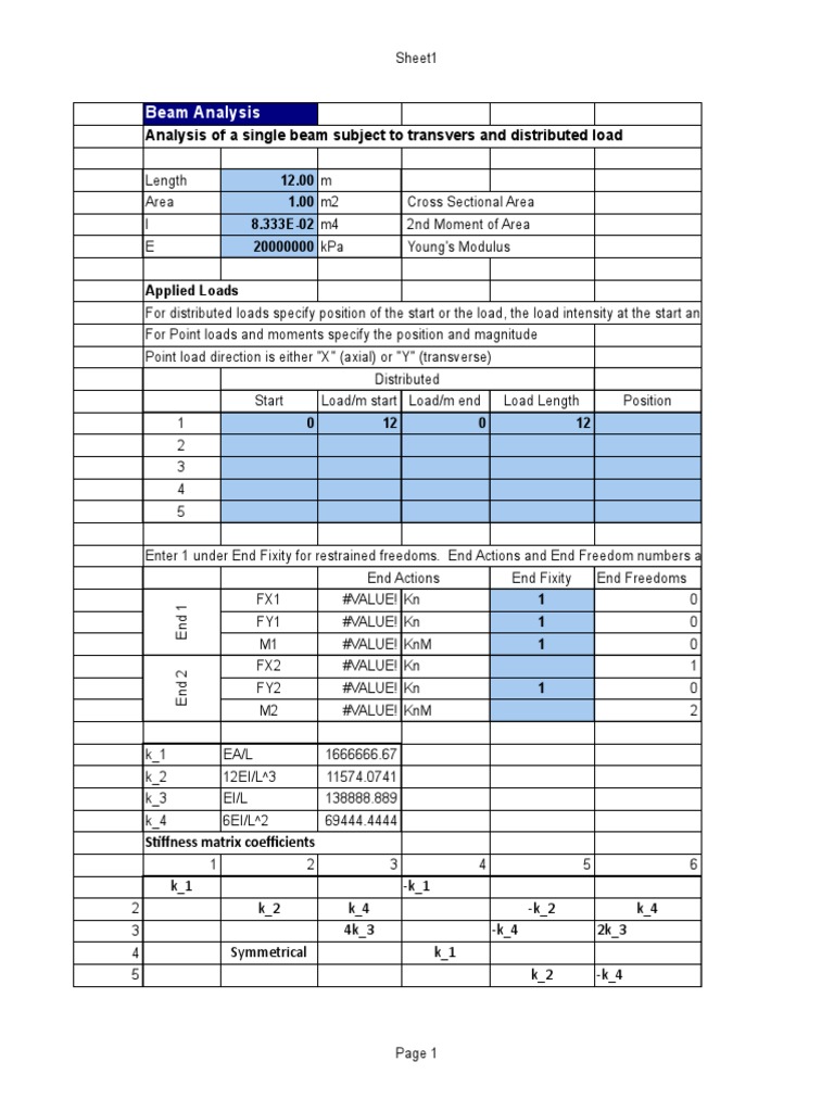 Analysis of a single beam subject to transvers and distributed load