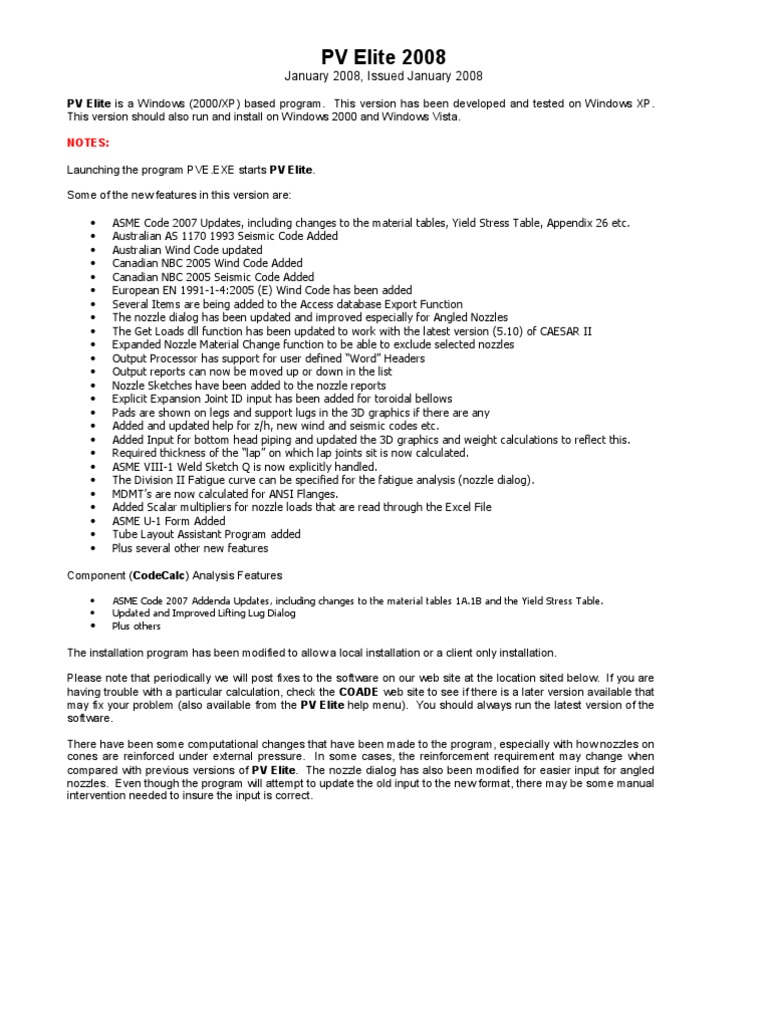 • ASME Code 2007 Addenda Updates, including changes to the material tables 1A.1B and the Yield Stress Table.