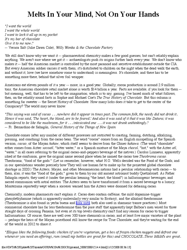 -- perhaps the heirs of the Mayan priesthood still know the recipe for True Chocolate, and they're waiting for the end