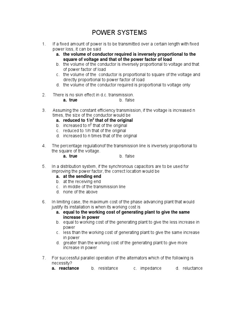 1. If a fixed amount of power is to be transmitted over a certain length with fixed