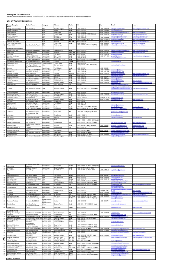 Rodrigues Tourism Contact Directory