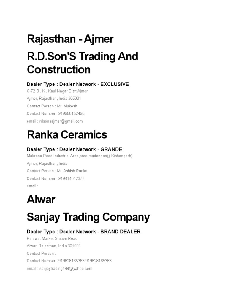 Dealer Type : Dealer Network - CERAMIC STUDIO