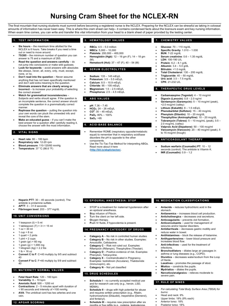 SOURCE: http://nurseslabs.com/nclex-cram-sheet/