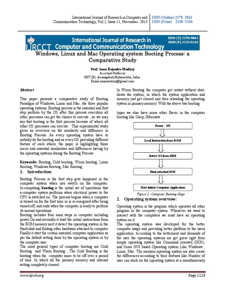 Keywords: Booting, Cold booting, Worm booting, Linux
