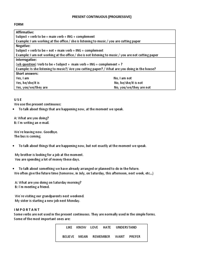 PRESENT CONTINUOUS (PROGRESSIVE)