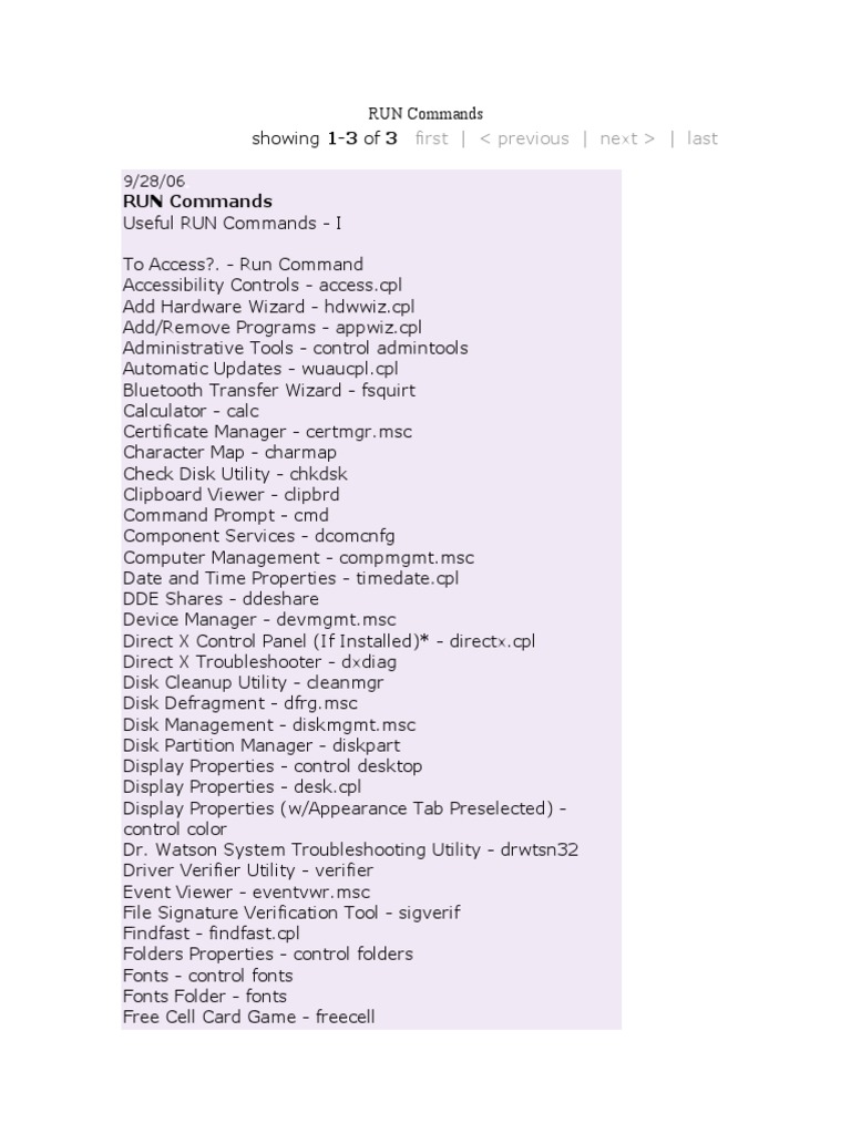 · Useful Run Commands - II