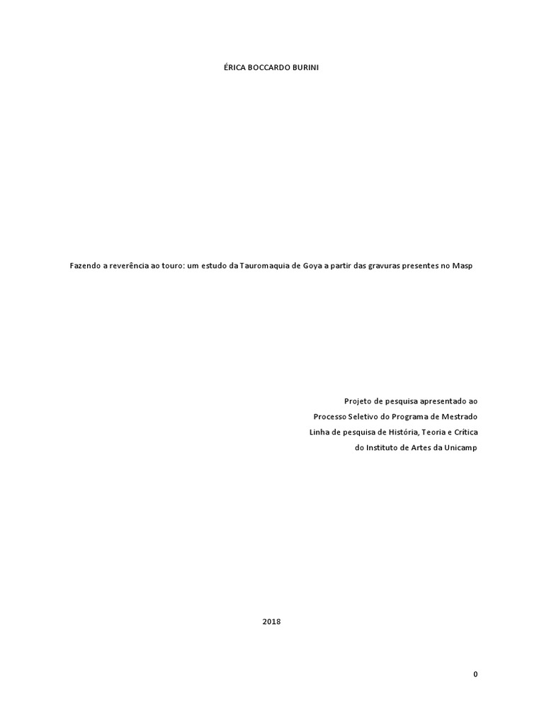 O projeto de pesquisa almeja realizar uma investigação sobre as gravuras da série Tauromaquia de