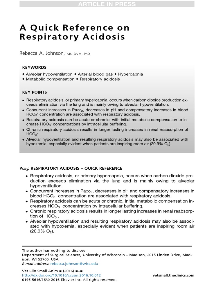 1. Johnson RA, de Morais HA. Respiratory acid-base disorders. In: DiBartola SP,
