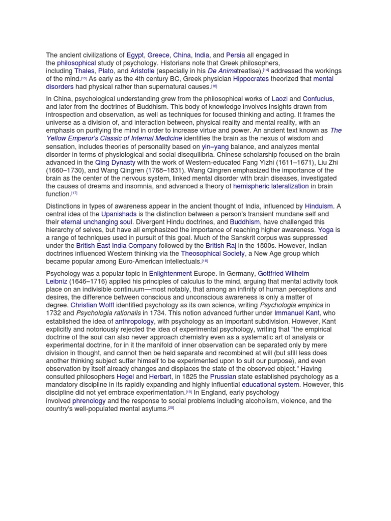 the philosophical study of psychology. Historians note that Greek philosophers,