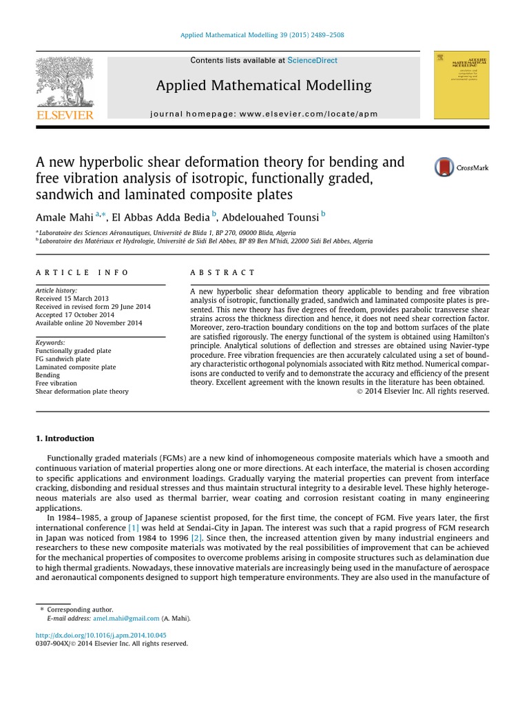 Applied Mathematical Modelling: Amale Mahi, El Abbas Adda Bedia, Abdelouahed Tounsi