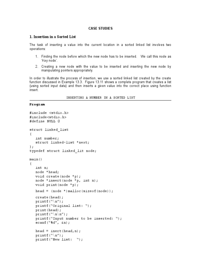 The program in fig. 13.11 can be used to create a sorted list. This is possible by creating ‘one