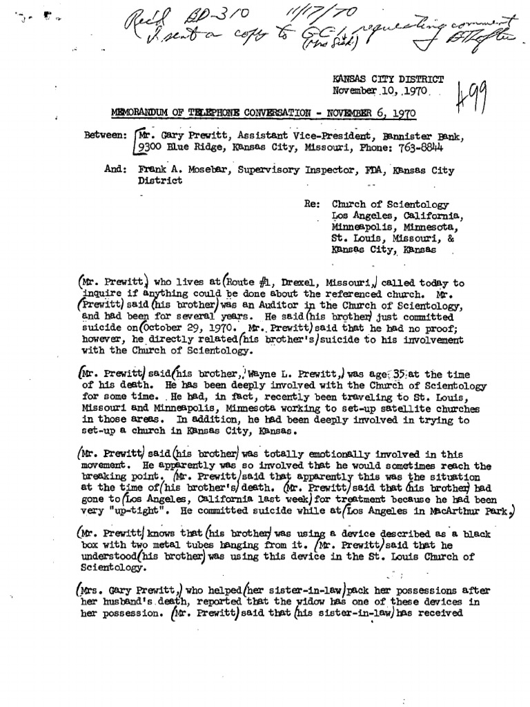 FDA Investigation of Scientology: Prewitt