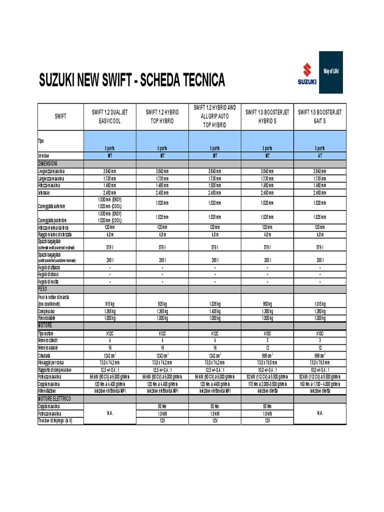 SUZUKI NEW SWIFT - SCHEDA TECNICA