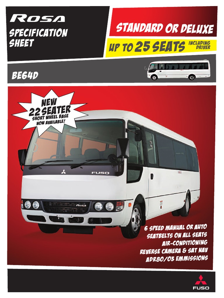 Rosa Deluxe: automatic swing door. Every Fuso Rosa comes standard with the Fuso Multimedia Unit which includes Rosa’s revised engine provides ample performance, yet