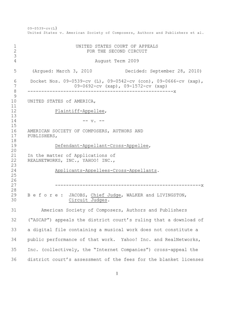 U.S. v. ASCAP (2d Cir. Sept. 28, 2010)