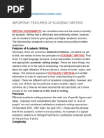 of expertise. Characteristics of academic writing include a formal tone, use
