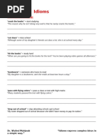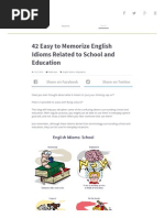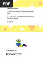 This document lists various idioms related to education and learning, including "draw a blank" meaning to be confused or unsure, "bookworm" referring to someone who enjoys reading, and "school someone in something" to teach someone about a topic. It provides 17 different idioms associated with education, learning, and schooling.