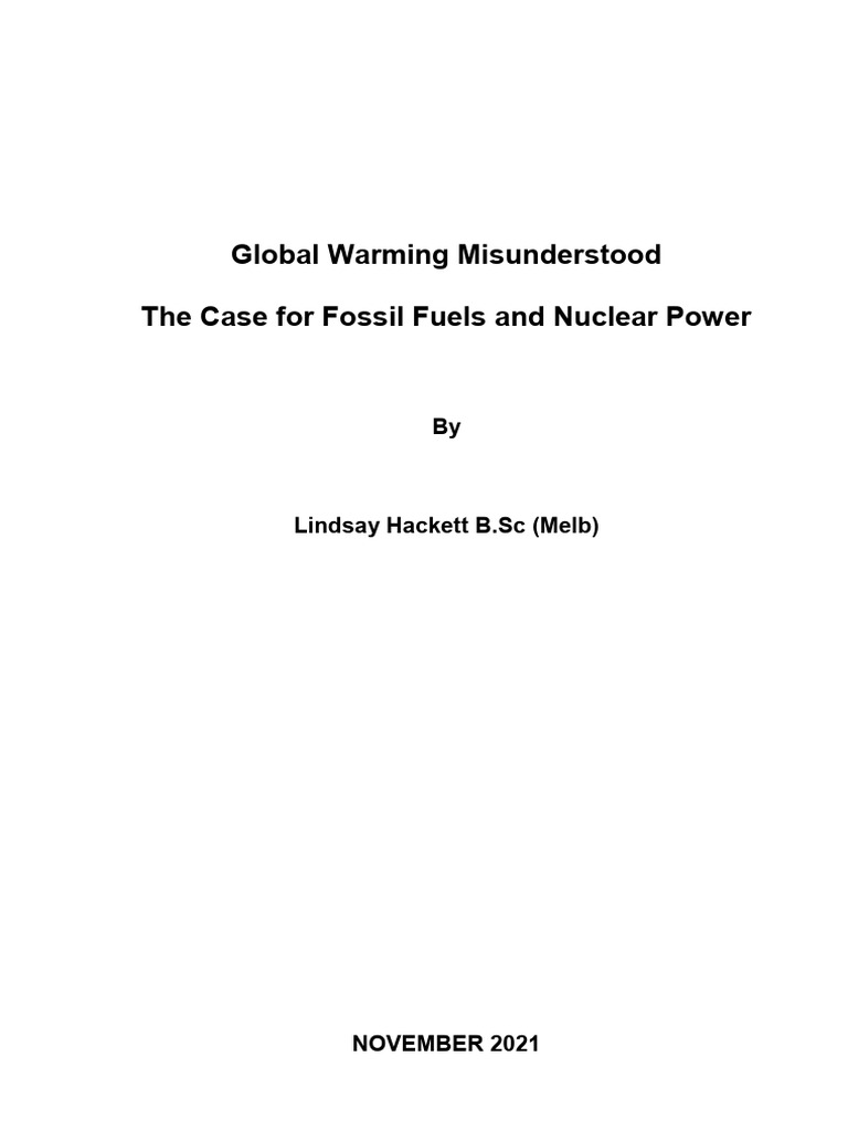 Introduction 3Paris Climate Agreement 3Electricity Generation 4The Popular Narrative and its Political Origins 6Consensus 6Fossil Fuels 8The Science is Not Settled 10 A note about data 10Uncertain Temperatures 10What comes first, and is there a Correlation? 12Water Vapour 17Methane 19 Absorption Spectra 20Cosmic Rays 21Plant Growth 21Summary 22Hurricanes 23Be Careful of the Data 24Sea Level Rise 25The Trees and the Forest 25Other Effects on Sea Levels 30Island Subsidence 32Vanuatu, Kiribati, and Tuvalu 34Satellite Imagery of Islands 38Nuclear Power 44Nuclear Waste Disposal 45Nuclear Today 46Conclusions 47