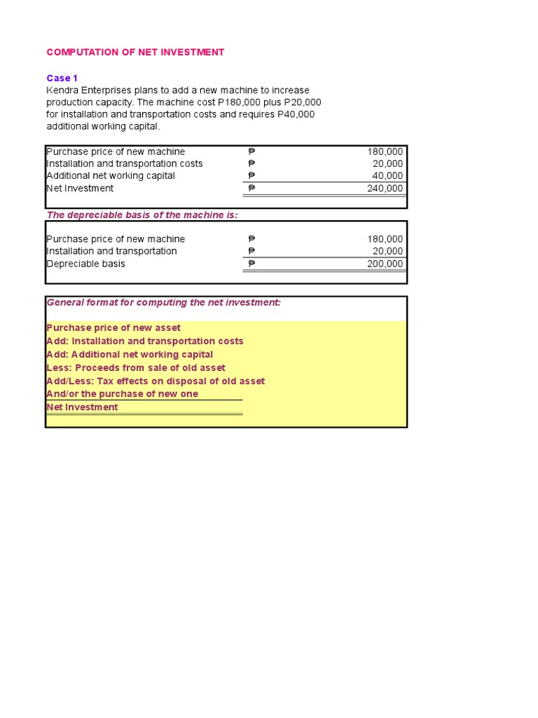 Machine A has a book value of P16,000 and a disposal value of P20,000 now. tax rate is 35%.