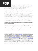 the product or service being advertised, usually through the use of one or more advertising slogans.