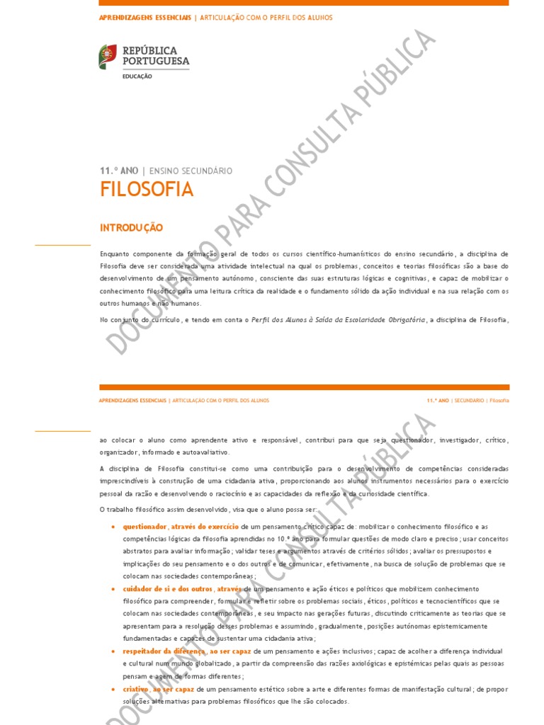 No conjunto do currículo, e tendo em conta o Perfil dos Alunos à Saída da Escolaridade Obrigatória, a disciplina de Filosofia,