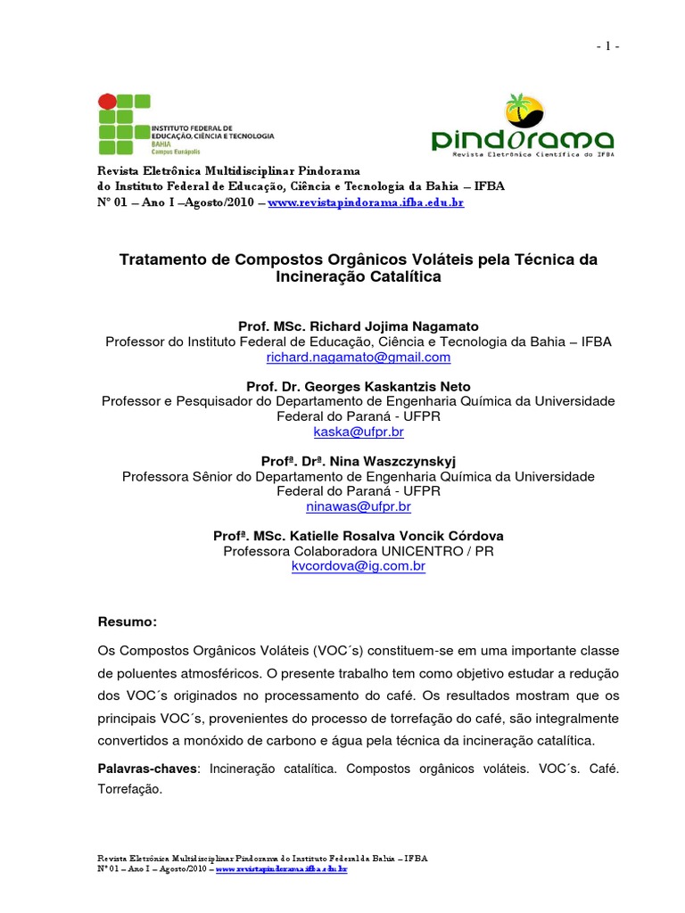 conversão catalítica dos VOC’s em CO2 e H2O. Finalmente o gás residual é