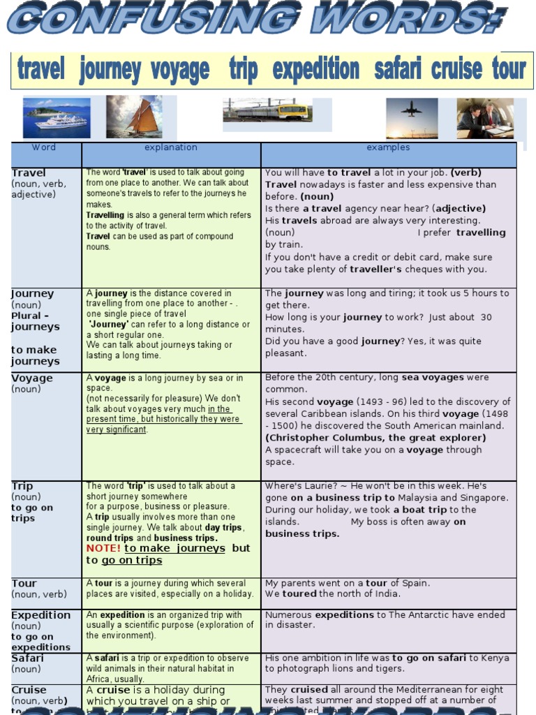 1. a)travel b)journey c)voyage