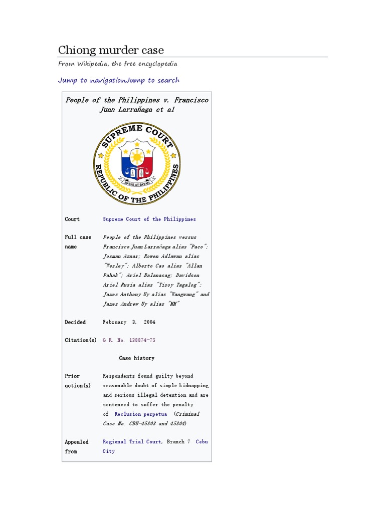 The Chiong murder case (People of the Philippines vs. Francisco Juan