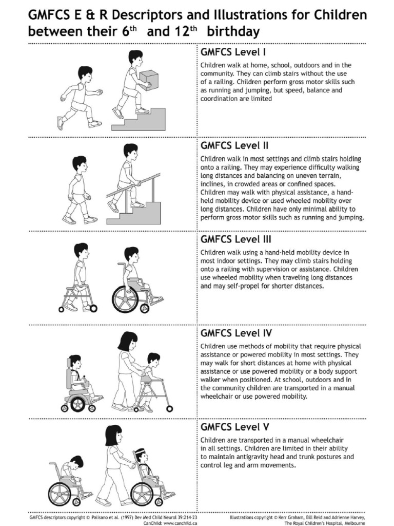 GMFCS descriptors copyright IC Palisano et al . (1997) Dev Med Child Neurol 39:214-23 Illustrations copyright IC Kerr Graham, Bill Reid and Adrienne Harvey,