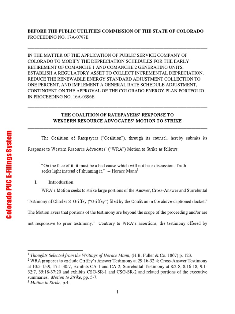 Coalition of Ratepayers Response To WRAs Motion To Strike