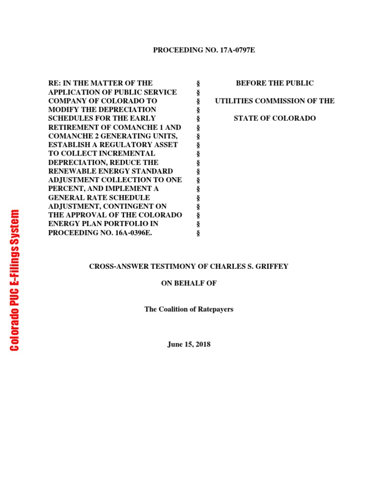 Mr. Griffey’s Cross Answer testimony rebuts Sierra Club witness Tyler Comings’ claim