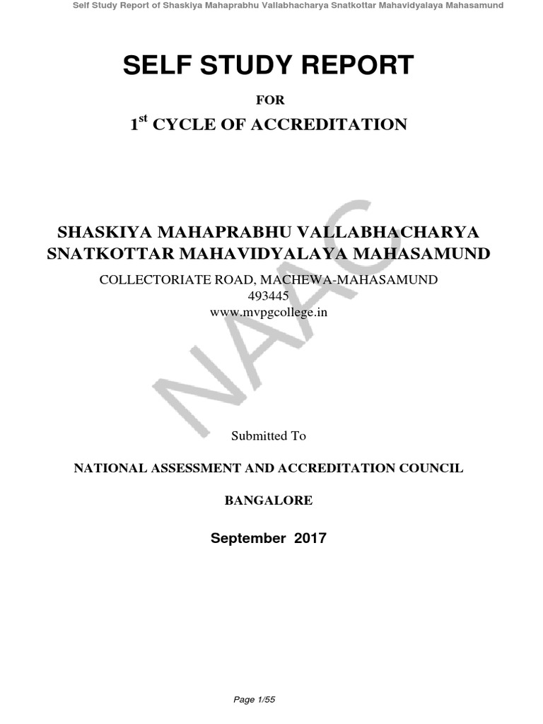 Self Study Report of Shaskiya Mahaprabhu Vallabhacharya Snatkottar Mahavidyalaya Mahasamund