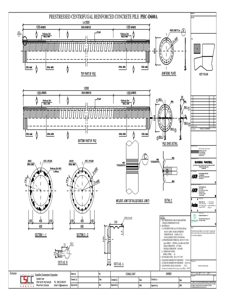 6. ALLOWABLE AXIAL LOAD (Pn) : 310 T SPUN PILE D600 DETAIL