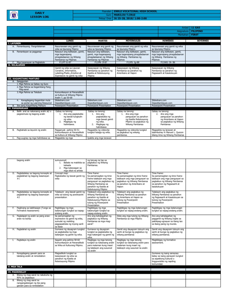 LESSON LOG Petsa/ Oras JU 25-28, 2018/ 1:00-2:00